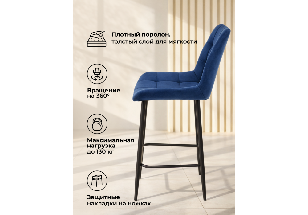 Барный стул поворотный Woodville Челси 360 синий (zd 798) / черный np 632580 Чебоксарам