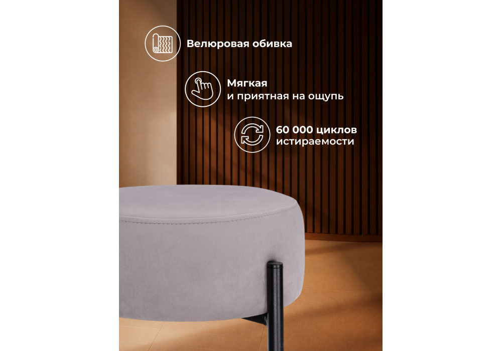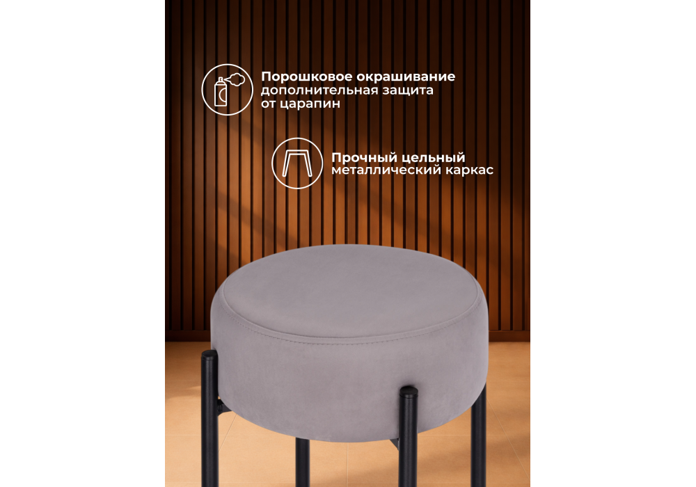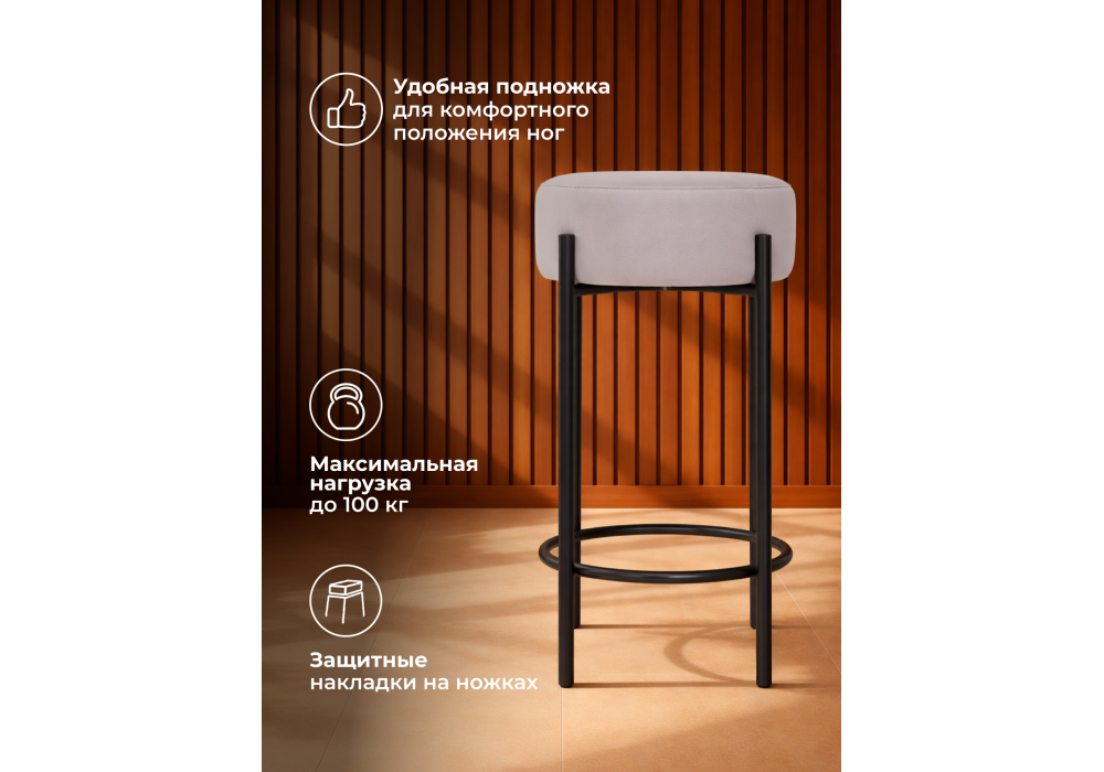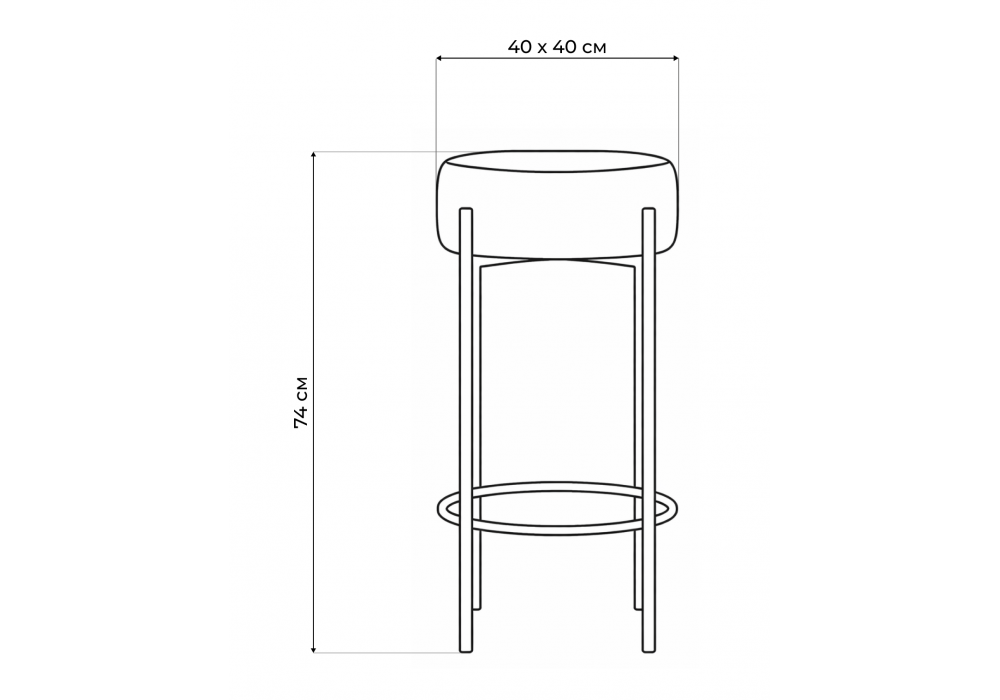 Высота подножки: 17 см. Материал каркаса - металл; Материал сиденья - велюр; Материал обивки - велюр; Цвет ножек - черный; Ширина - 40; Глубина - 40; Высота - 74; Ширина сиденья - 37; Глубина сиденья - 37; Высота сиденья - 74;