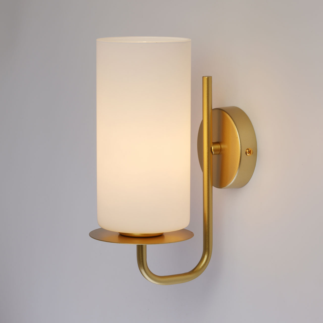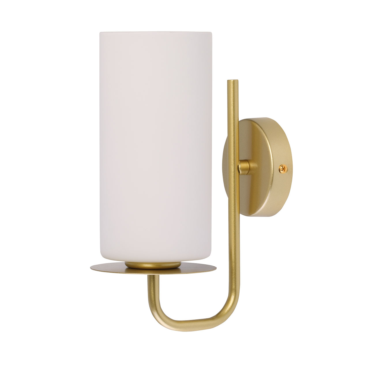 Великолепная модель 112011501 от немецкого производителя De City коллекции - Соло .Металлическое основание настенного бра окрашено в цвет перламутрового золота. Стеклянный плафон цилиндрической формы окрашен в белый цвет.Данную модель всегда можете купить в интернет-магазине 220svet.