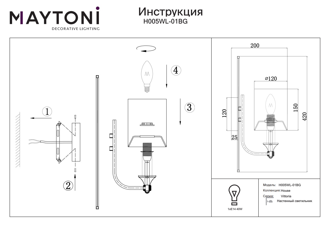 Купить "Бра Maytoni Vittoria H005WL-01BG"