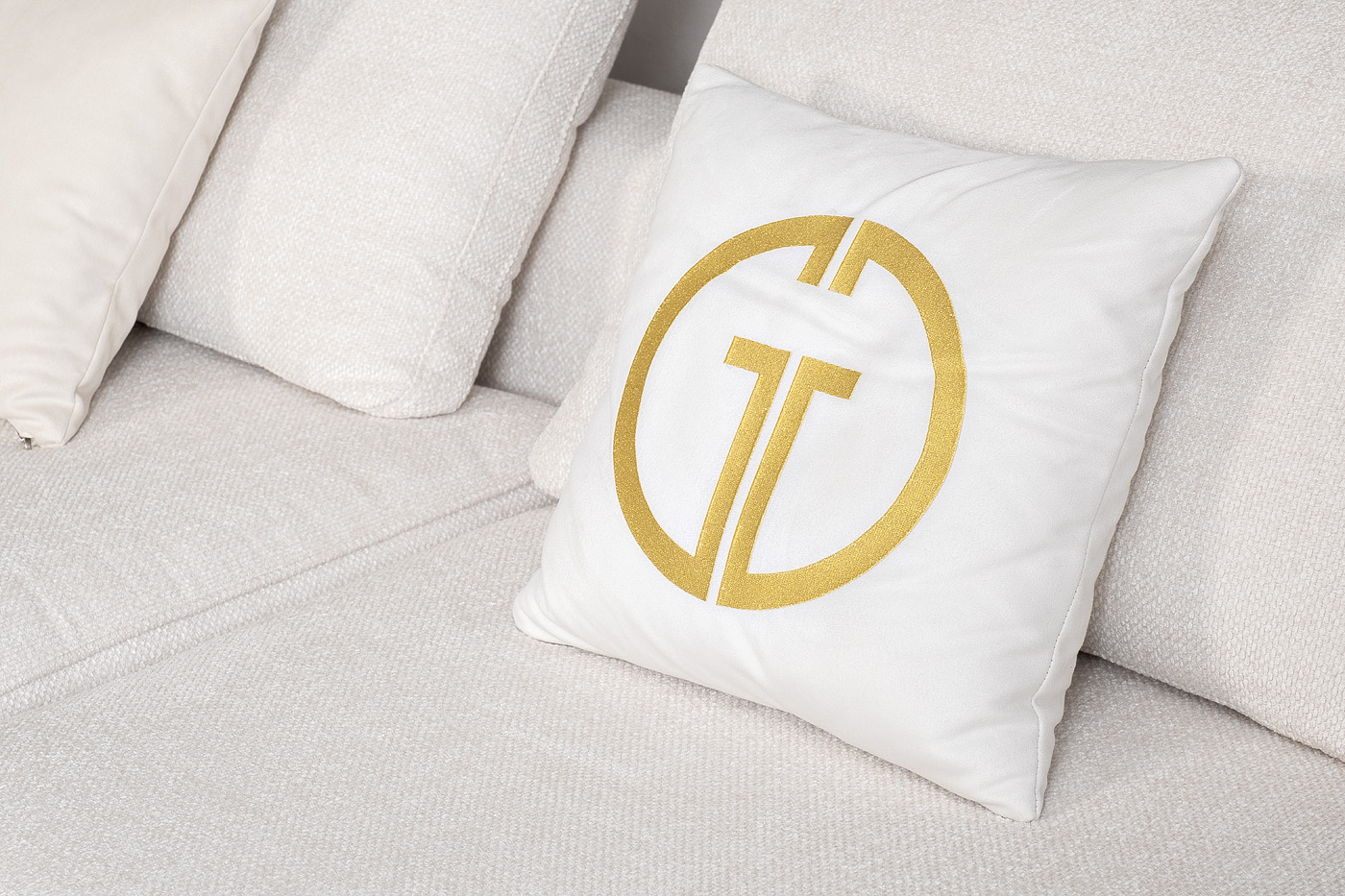 Комплект мебели №51 модульный Диван Тесоро(Tesoro) (левый угол). В состав комплекта входит: модуль прямой DO+P-1шт, модуль угловой правый DR+P- 1шт. Комплект выполнен в ткани из коллекции Garda Decor- шенилл Mobi-Ecru. В состав комплекта входят декоративные подушки: 45*45см в ткани Атмосфера(Atmosphera)010-2шт, 45*45см в ткани Атмосфера(Atmosphera)000-2шт с вышивкой эмблема в цвет золото. Металлические опоры 18см, цвет бронза. Габариты комплекта: ширина- 2900мм, глубина-3800мм, высота- 900мм. Глубина сиденья- 750мм, высота посадочного места- 440мм.