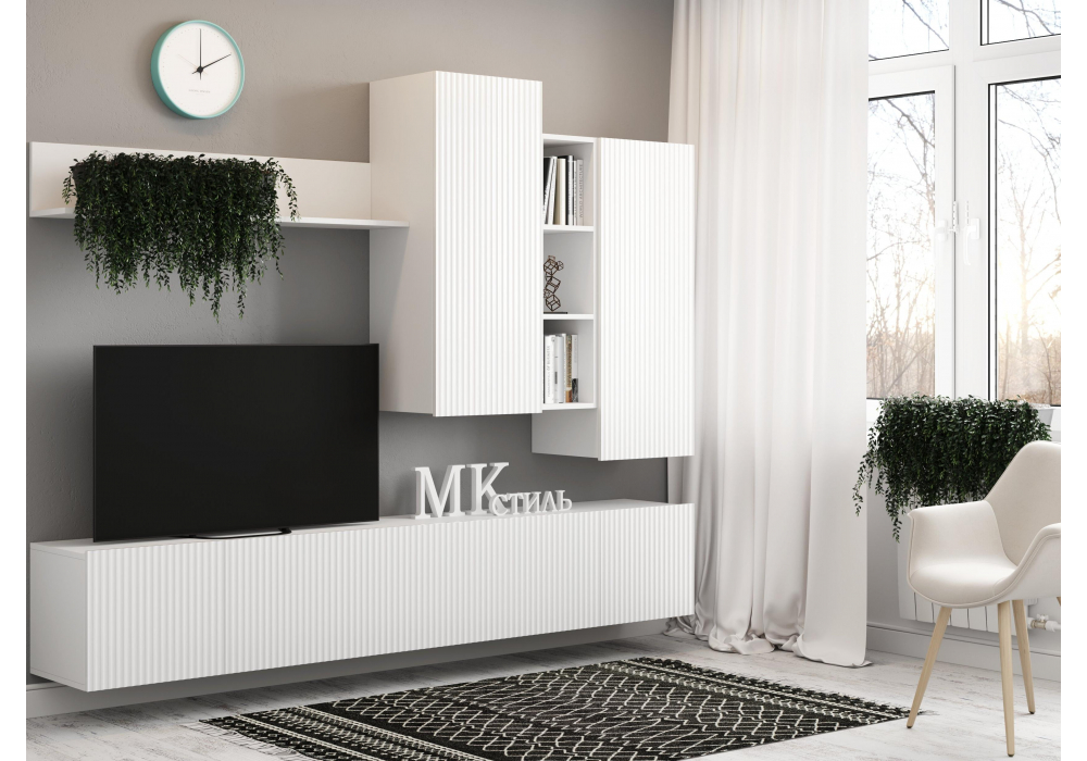 Купить "Гостиная Woodville Морти НМ-001 белый гладкий / глянцевый белый 583081"