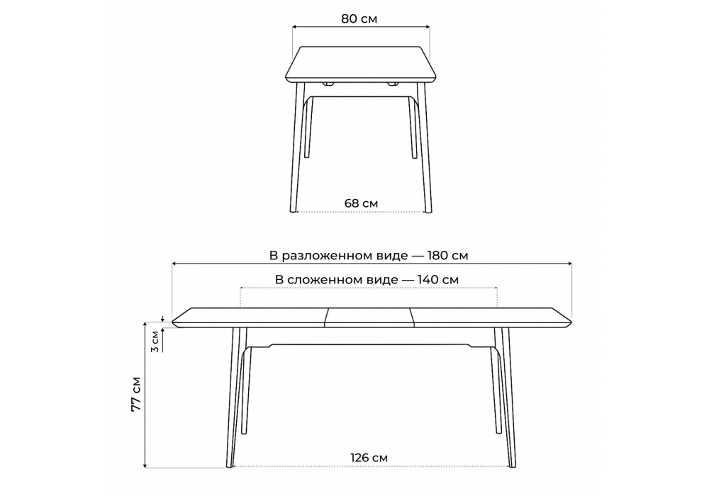 - Длина стола в разложенном виде: 1800