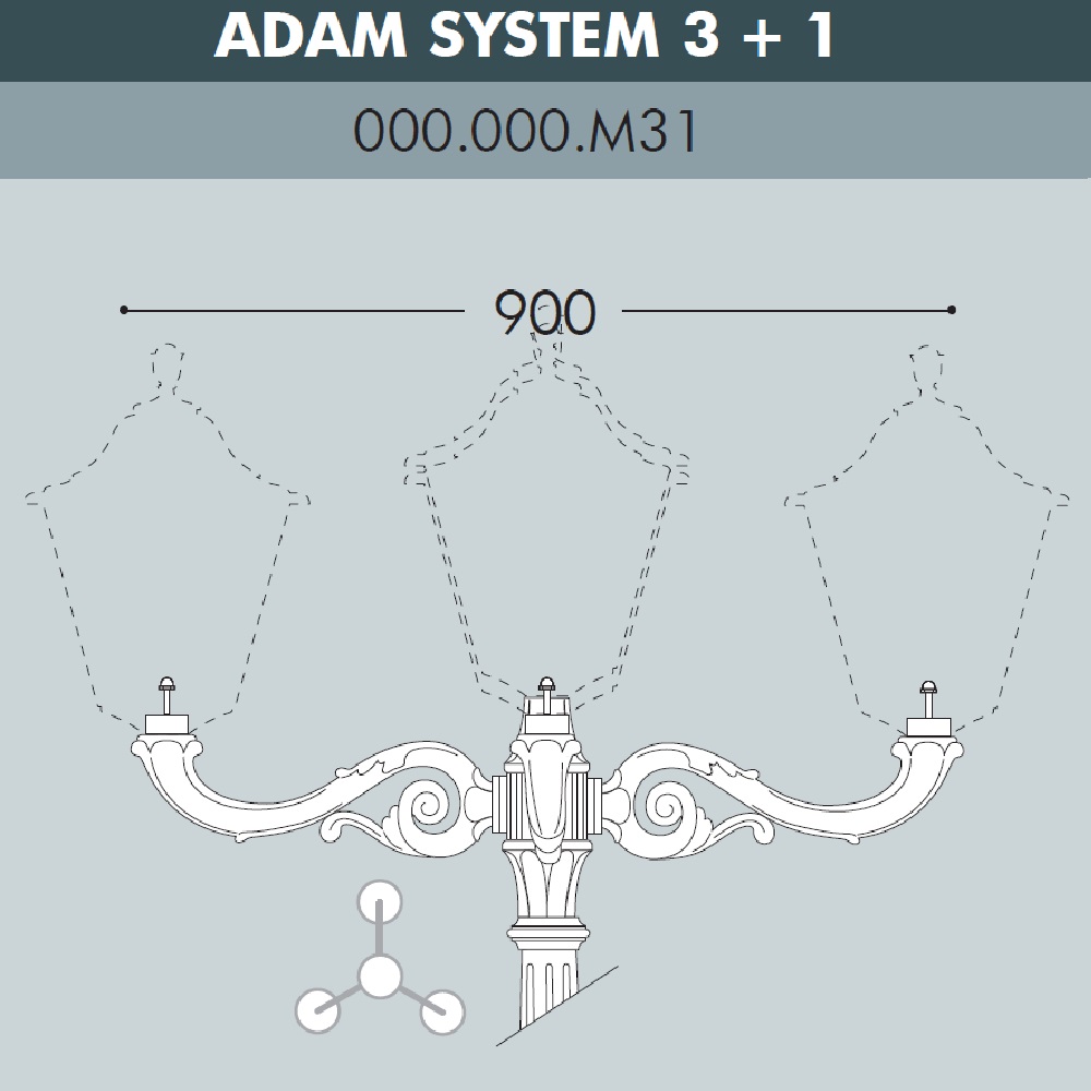 Консоль паркового фонаря на стену FUMAGALLI серии ADAM, модель ADAM SYS 3L+1. Классическая консоль на столб большого размера для четырех парковых светильников средней или большой серии. Три садовых светильника расположены на кронштейнах по бокам и один по середине консоли, над парковой опорой. Посадочный диаметр для консоли(на столб) и светильников - 60 мм, фиксация с помощью стопорных винтов. Монтаж кронштейнов в положение "вверх". Дизайн классический, имитация чугунного литья или ковки. Изготовлена по технологии FUMATECH, с использованием материалов с разными физическими свойствами. В центре кронштейнов расположены стальные, оцинкованные с двух сторон трубки, (внутри проходят провода), которые придают им дополнительную прочность и жесткость. С внешней стороны используется сверхпрочный технологичный полимерный материал RESIN, который защищает поверхность от агрессивного воздействия всех атмосферных факторов (покрытие не ржавеет, не выгорает на солнце, не боится солей и реагентов). Не проводит электричество!!! Кронштейн и светильники на ней не требуют заземления и относятся к 2 классу электробезопасности. Срок службы - не менее 20 лет. Температура эксплуатации от -60 до +90. Для установки парковых фонарей FUMAGALLI на стену можно использовать консоли ADAM WALL (стена).