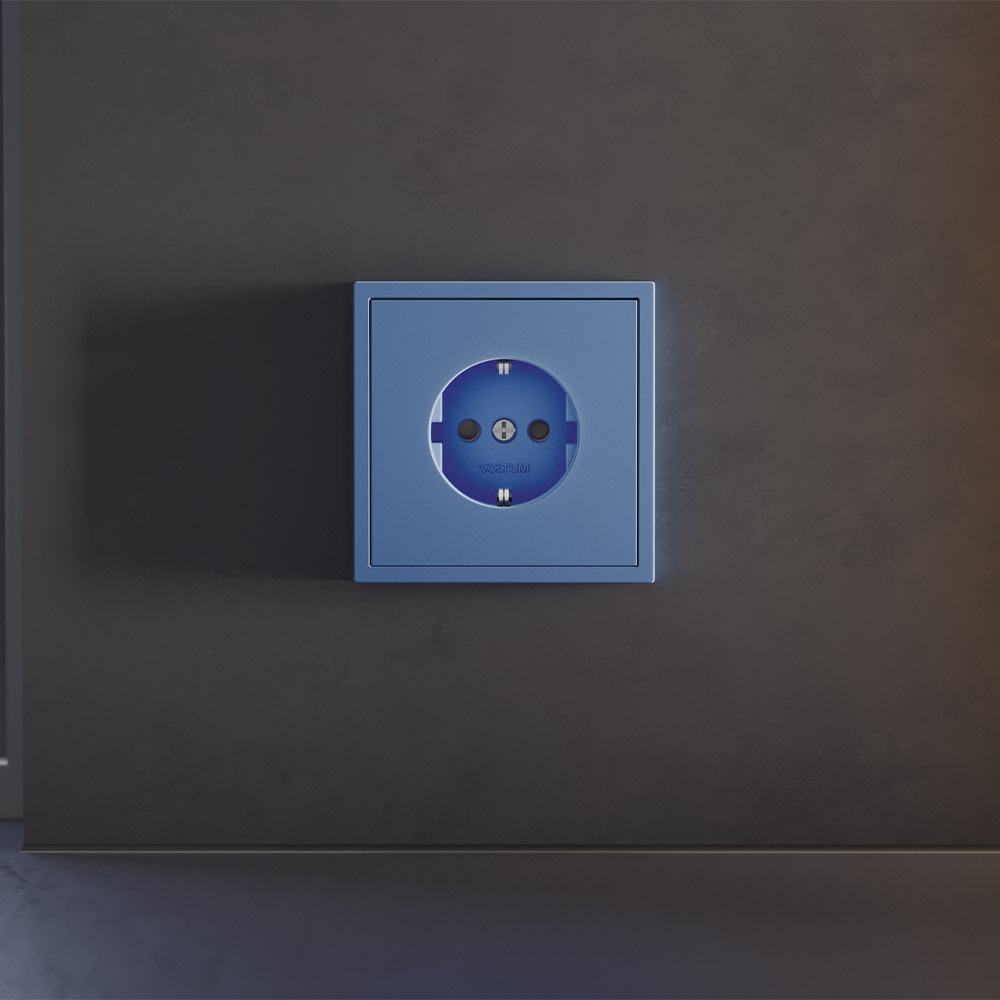 Купить "Накладка для розетки с заземлением и защитными шторками Voltum S70 VLS000715 (деним)"