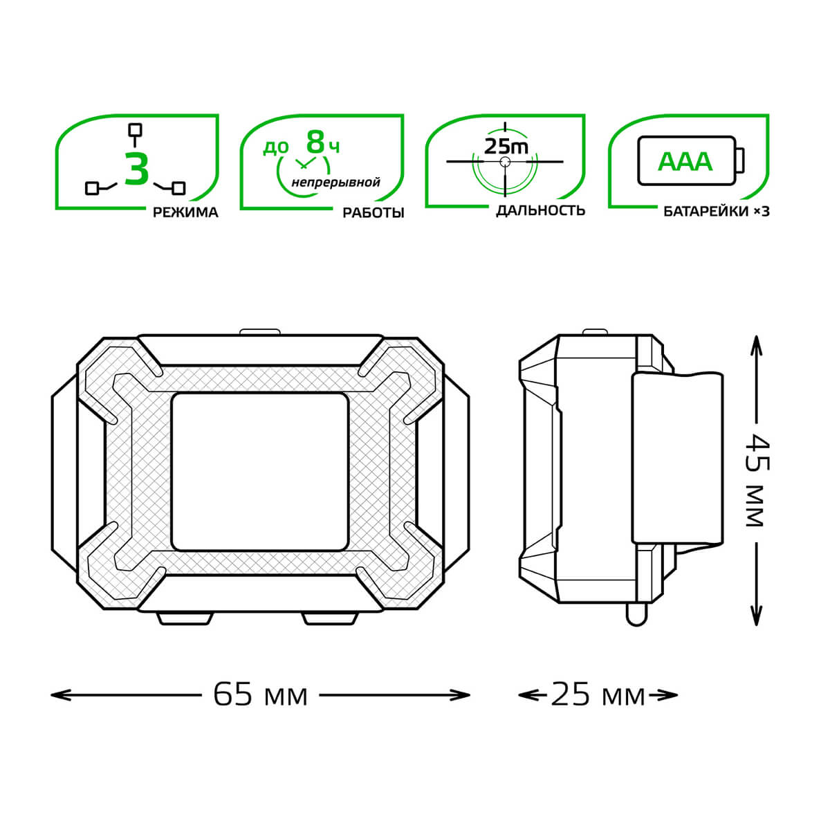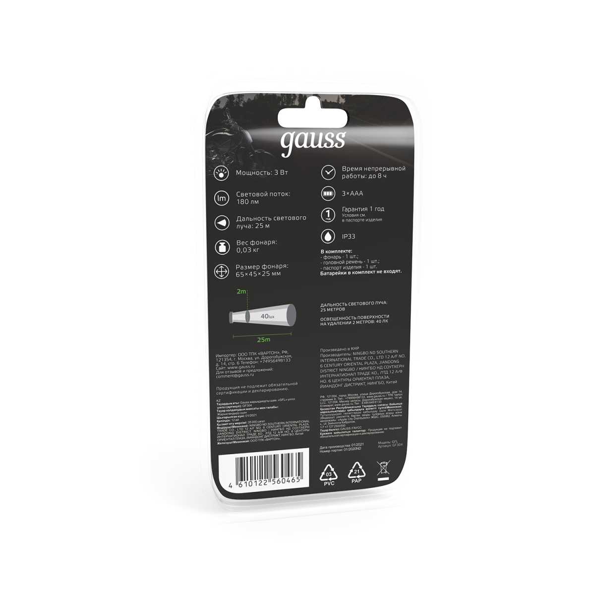 Налобный светодиодный фонарь Gauss от батареек 65х45 180 лм GF304 Чебоксарам