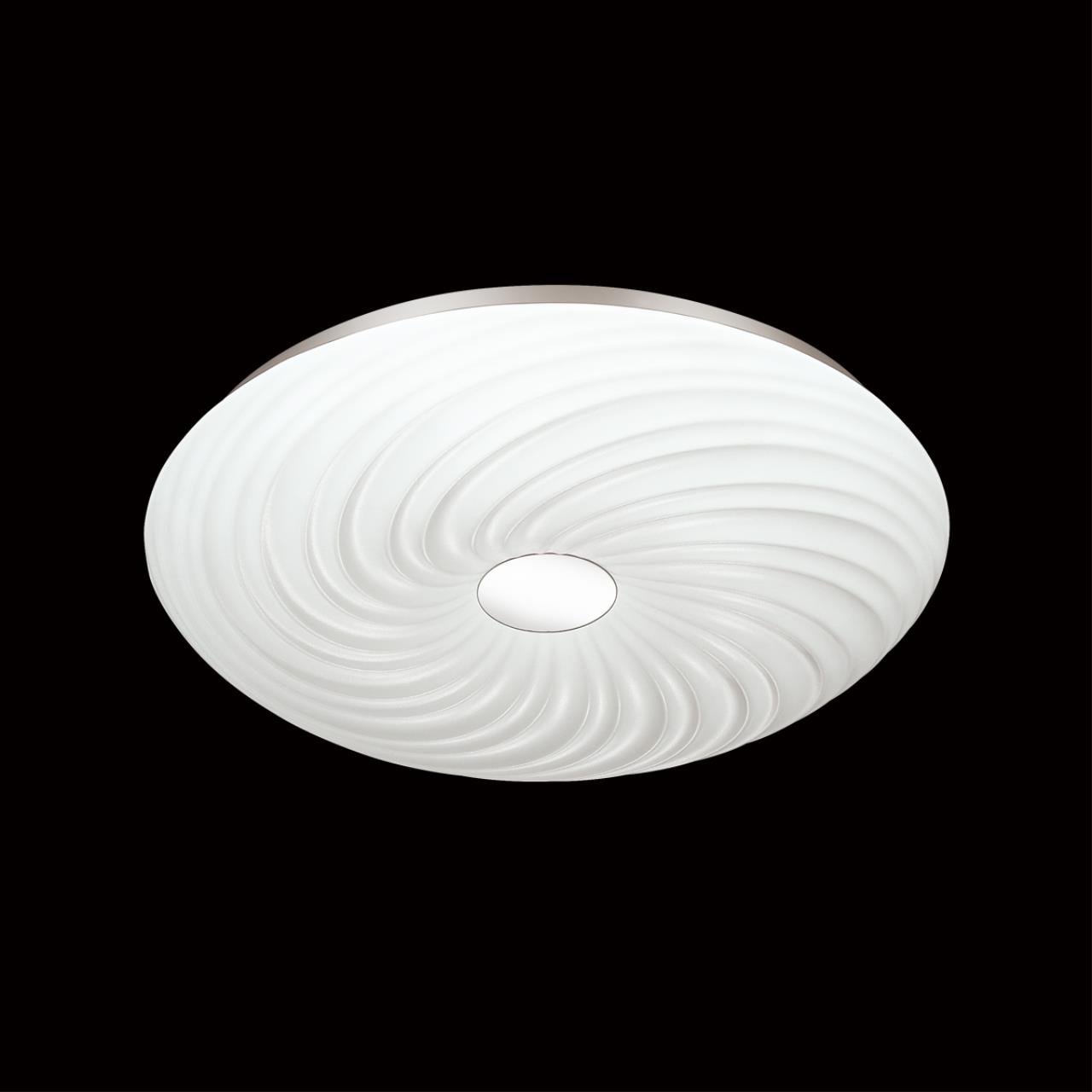Светильник 3060/EL линии FLORSA состоит из металлического основания (базы) и пластикового рассеивателя. Материал рассеивателя - высококачественный пластик марки PMMA 2.0 белого цвета с глянцевой поверхностью и эффектом "звездное небо", обеспечивающий светильнику равномерное рассеивание и хорошее светопропускание. Форма плафона: круглая, декорирована рельефным белым ободом. Степень защиты IP43 позволяет использовать светильник в определенных зонах влажных помещений. В комплект входит заменяемый LED модуль с линзами, мощностью 72Вт, которая соответствует лампе накаливания 730Вт. А также пульт ДУ, с помощью которого осуществляется плавное изменение цветовой температуры 3000-6300К, изменение яркости, переход в режим переключения теплого/белого/холодного/ночного света. Светильник имеет функцию "память".