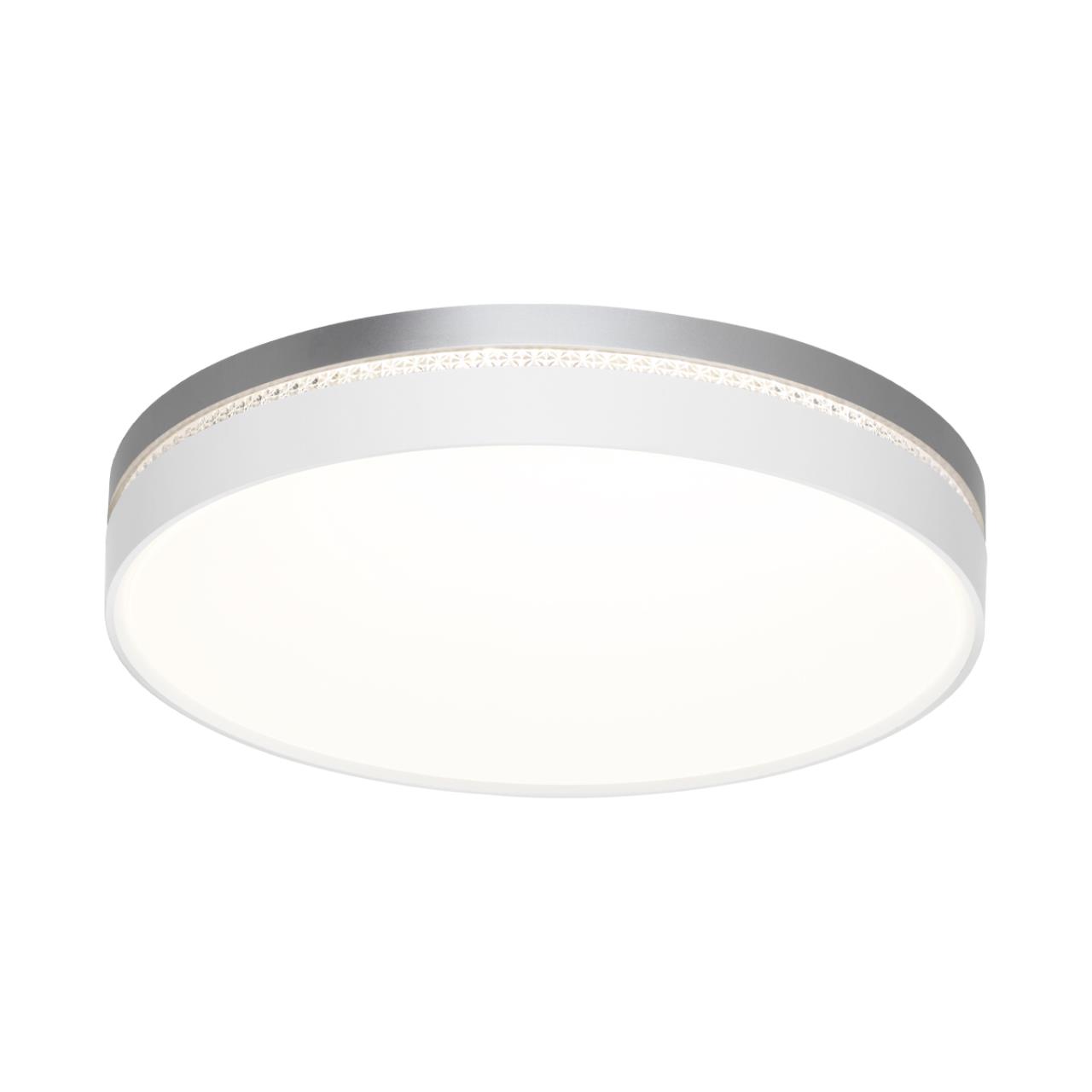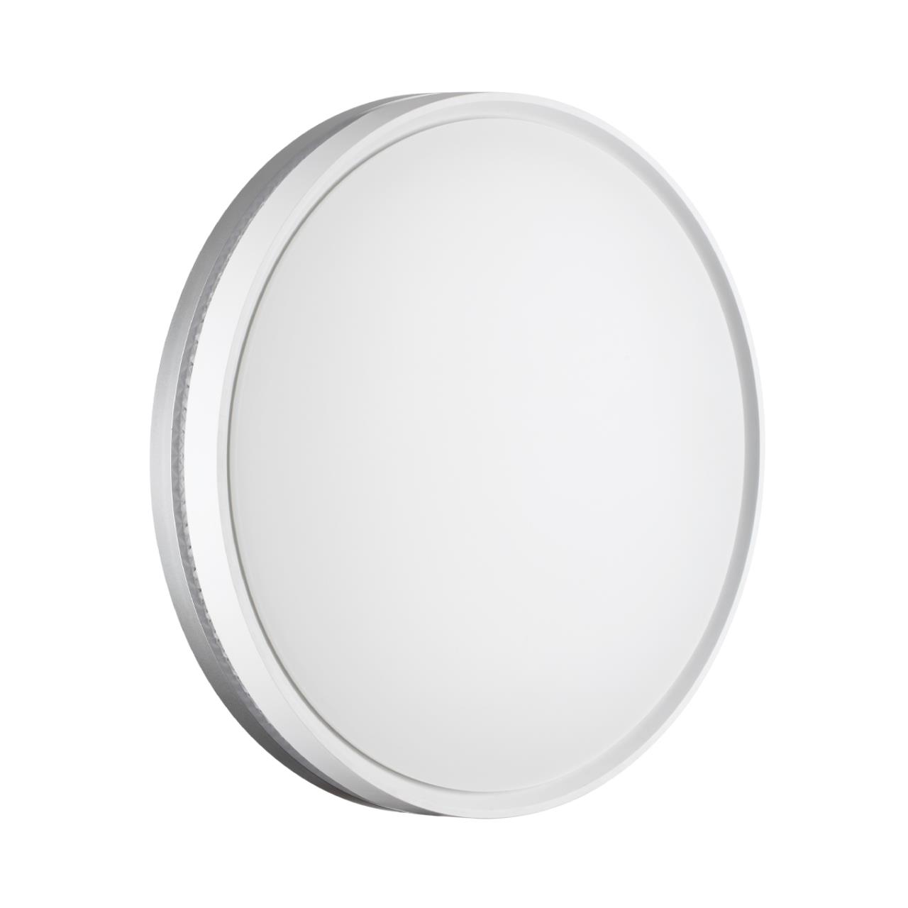 Светильник 7670/ELN линии NOHAVA GREY состоит из металлического основания (базы) и пластикового рассеивателя. Материал рассеивателя - высококачественный пластик марки PMMA 2.0 белого цвета с матовой поверхностью. Пластик обеспечивает светильнику равномерное рассеивание и хорошее светопропускание. Форма плафона: круглая, декорирована ободом из пластика светло-серого цвета у основания светильники и белого цвета у внешнего края. Обод украшен прозрачной декоративной вставкой "под хрусталь". Степень защиты IP43 позволяет использовать светильник в определенных зонах влажных помещений. В комплект входит LED модуль с линзами, мощностью 76Вт, которая соответствует лампе накаливания 740Вт. А также переключатель температуры цвета (ССT) на драйвере, с помощью которого осуществляется изменение цветовой температуры 3000/4000/6000К и переход светильника в режим теплого/белого/холодного света. Для установки необходимого режима рекомендуется использовать удлиненный тонкий предмет типа небольшой отвертки.