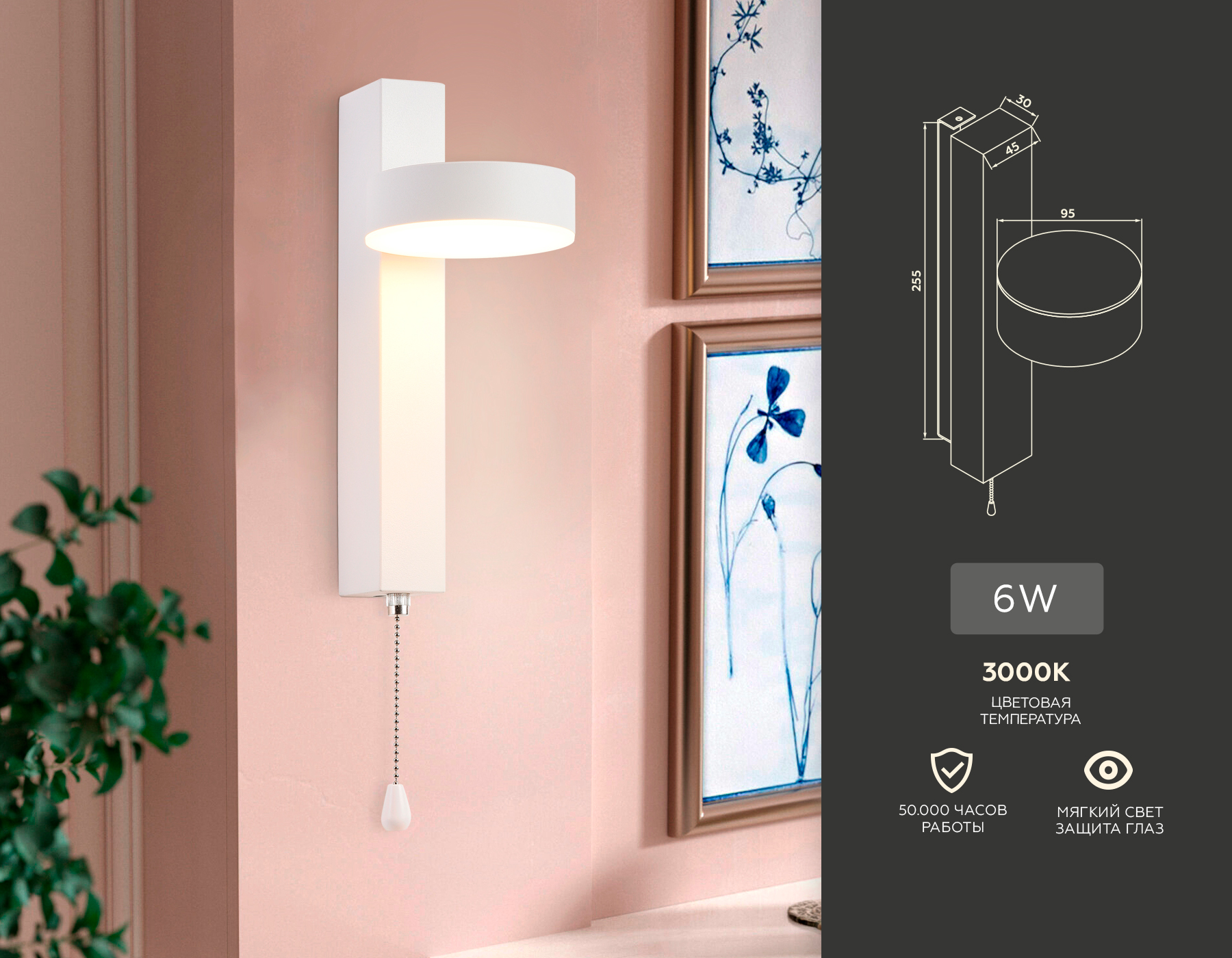 - Цветовая температура, K: 3000