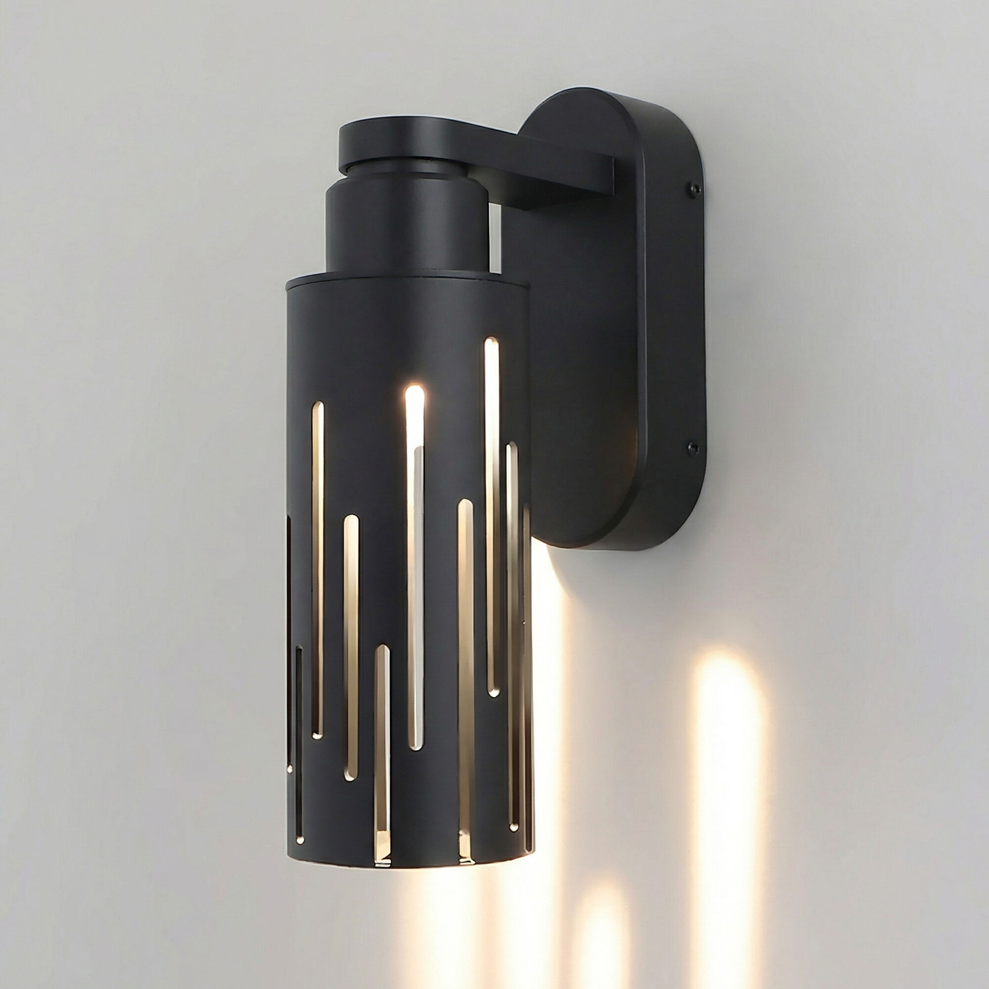 Уличный настенный светильник Streak станет настоящим украшением фасада здания. Металлический плафон выполнен в строгом и современном дизайне, декорирован вертикальными прорезями, сквозь которые проходит мягкий и рассеянный свет. Благодаря оригинальной конструкции, модель создает на стене световые узоры для уютной атмосферы и эстетичной привлекательности пространства.