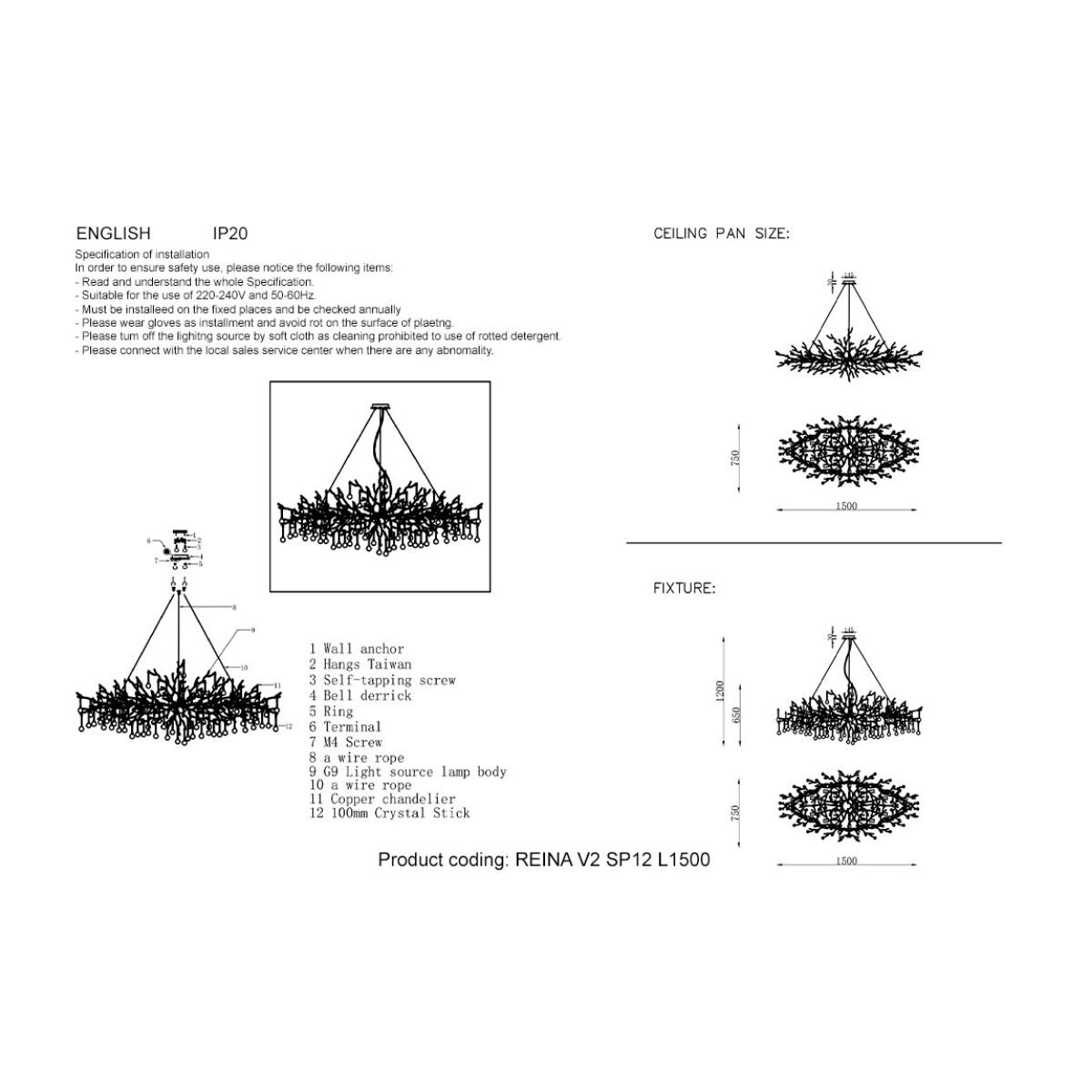 Подвесная люстра Crystal Lux REINA V2 SP12 L1500 GOLD PEARL Чебоксарам