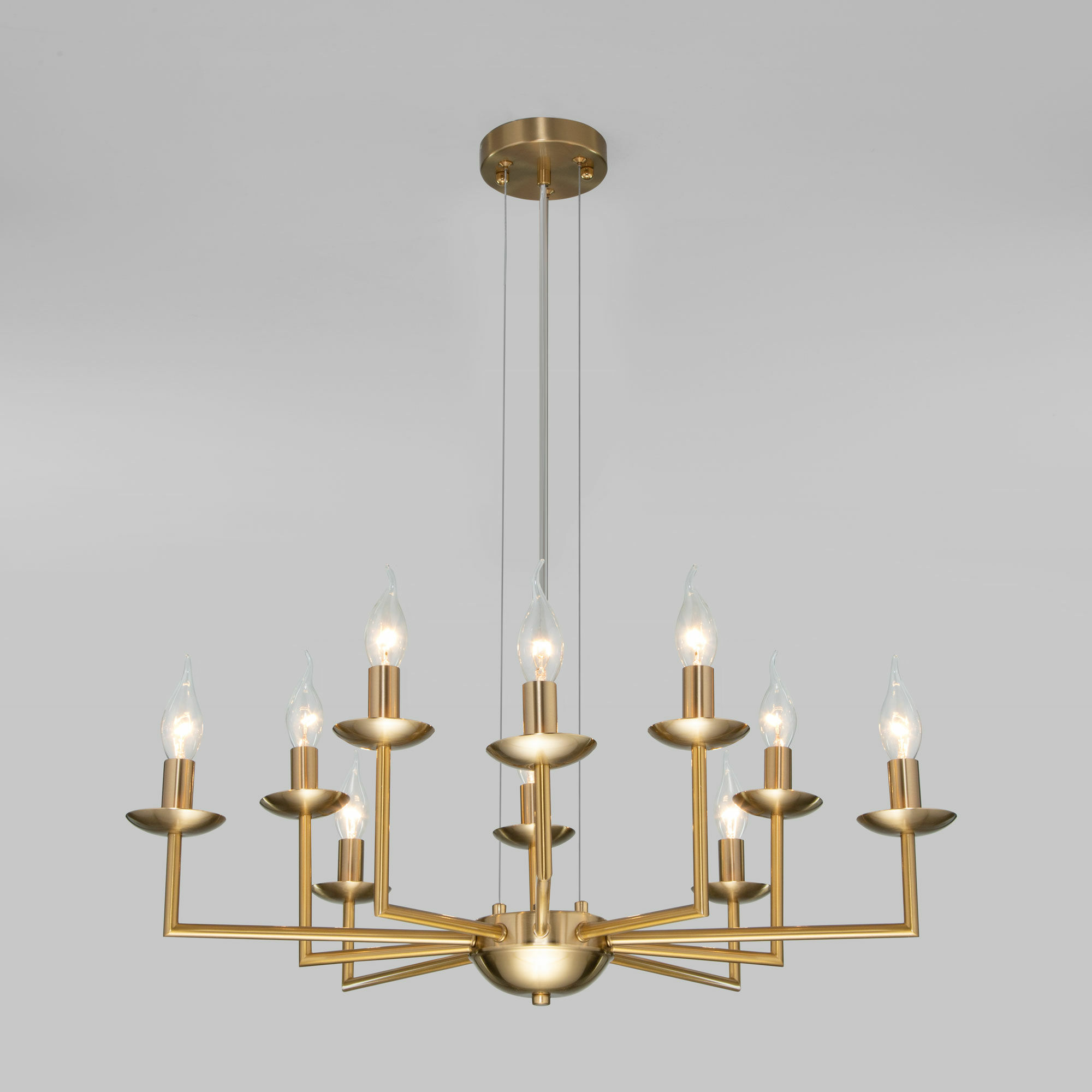 Классическая люстра на 10 рожков в цвете латунь преобразит потолочное пространство и создаст в вашем помещении комфортное полноценное освещение на площади 18 м кв.