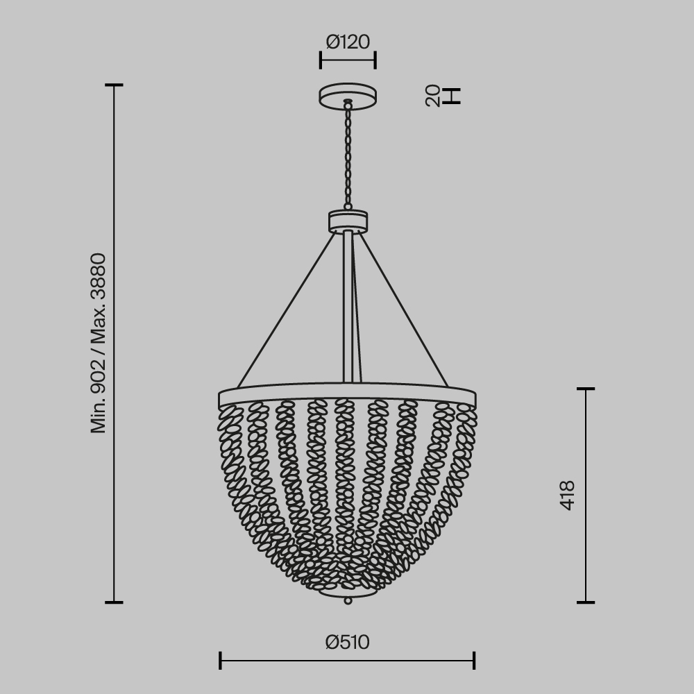 - Высота плафона (абажура): 418