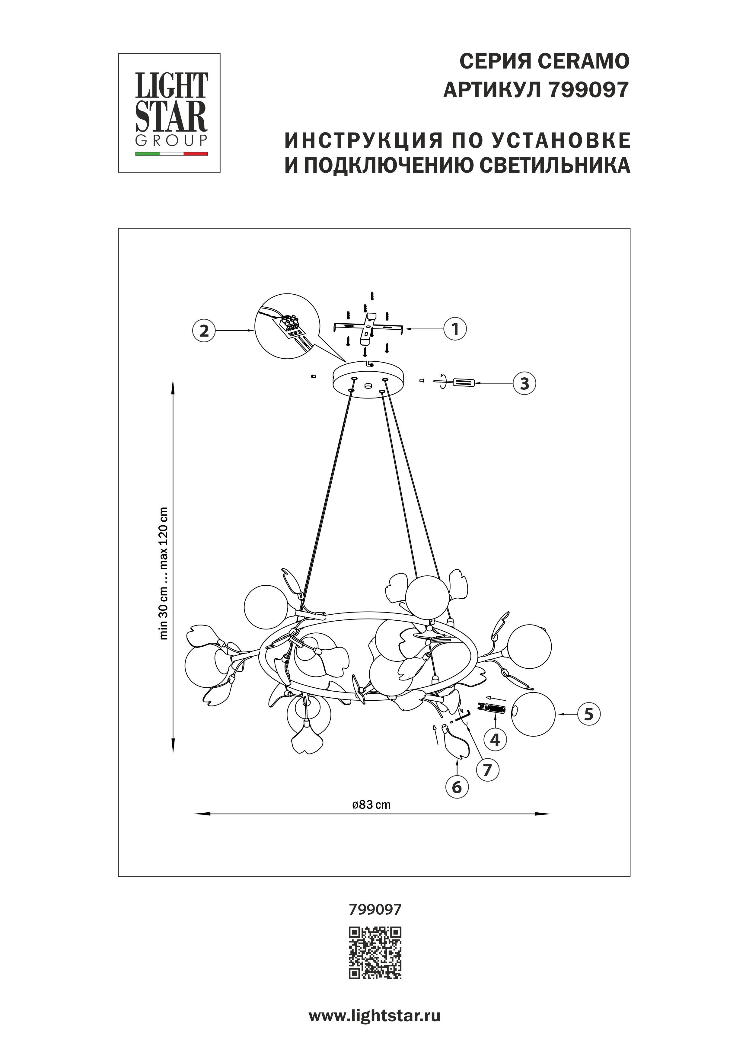 Купить "Подвесная люстра Lightstar Ceramo BW 799097"