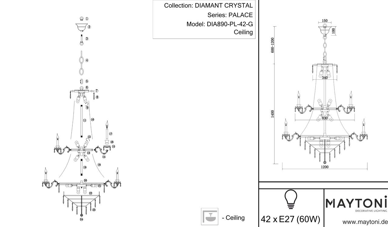 Данную модель DIA890-PL-42-G с быстрой доставкой спешите купить по цене 818 900 ₽ в магазине 220svet.ru
