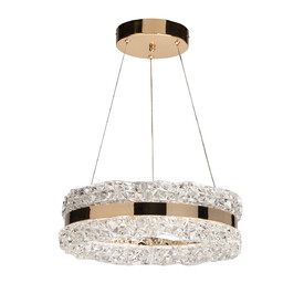 Металлическое основание подвесной люстры окрашено в черный цвет. Плафон люстры выполнен из сплава алюминия с цинком и гальванизирован в цвет графита. Светодиодный источник света закрыт матовым акрилом. Светильник декорирован пластинами из прозрачного текстурного акрила