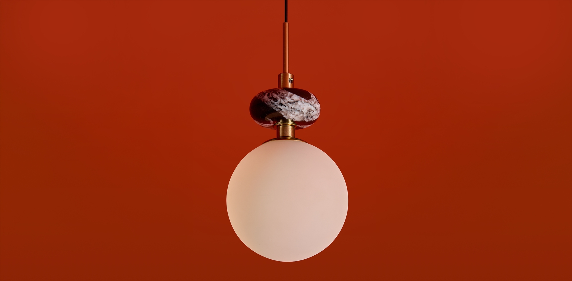 Арматура — металл. Плафоны из алебастра/камня и матового белого стекла. Версии с лампами G9 (не в комплекте) и с LED источником света. Высота регулируется.