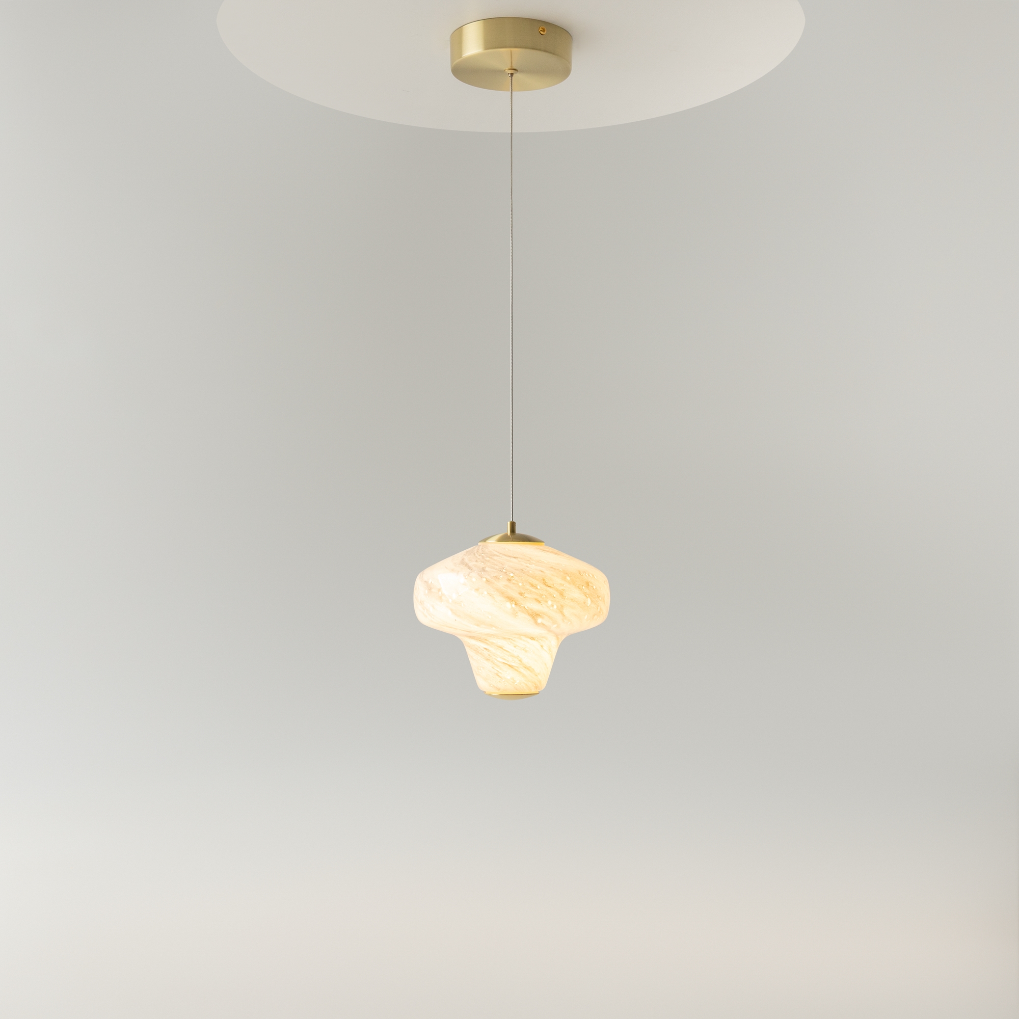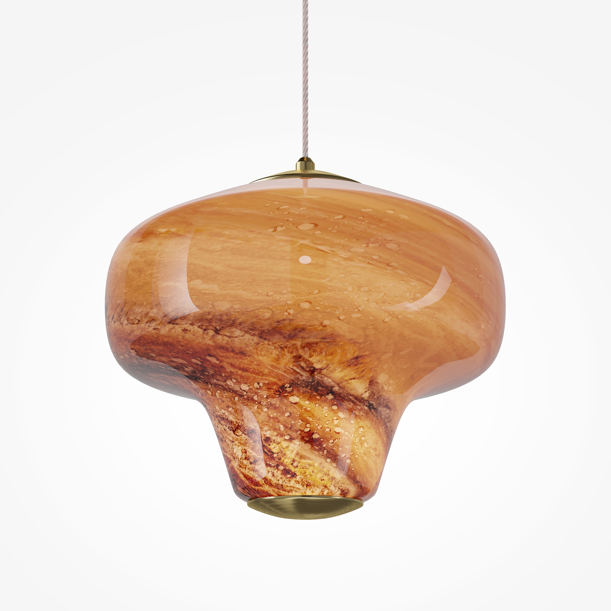 Серия подвесных светильников Sirocco – это история о совместном путешествии двух стихий. Форма стеклянного плафона напоминает вихрь воздушных потоков, а рисунок – танец песчинок. Серия представлена в двух цветах стекла: белом и янтарном, металлическая арматура в цвете сатинированной латуни. Встроенный LED-источник (3000K). Светильники Sirocco можно устанавливать в качестве одиночных акцентов или формировать композиции, так как молочный и оранжевый оттенки гармонично сочетаются друг с другом.