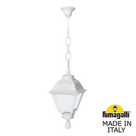 Подвесной уличный светильник FUMAGALLI серии CEFA, модельCEFA/SICHEM. Подвесной уличный светильник CEFA на цепочке SICHEM. Используются для архитектурного освещения в стиле "классика". Место установки уличных светильников - арки, галереи, садовые беседки, веранды, лоджии и другие места где требуется и возможна установка подвесных фонарей. Изготовлены в Италии, по уникальным технологиям "FUMAGALLI" из современного композитного полимера RESIN. Этот материал в 5 раз прочнее металла, не ржавеет, не окисляется, не выгорает на солнце, его не нужно красить. Все светильники пыле-влаго защищены по стандарту IP55 (Пылезащищенные, защита от водяных струй с любого направления). Рассеиватель выполнен из антивандального, не мутнеющего и не горючего PMMA (ПолиМетилМетаАкрилат). Срок службы светильника - не менее 20 лет. Температура использования от -60 до +90. В серии CEFA есть фонари в настенном (BISSO/CEFA, OFIR/CEFA, MIRRA/CEFA, PORPORA/CEFA) подвесном (SICHEM/CEFA) и наземном исполнении (MINILOT/CEFA, MIZAR.R/CEFA, IAFAET.R/CEFA, ALOE.R/CEFA, ARTU/CEFA, GIGI/CEFA, RICU/CEFA, RICU/ISSO/CEFA 2L, NEBO/CEFA, NEBO OFIR/CEFA 2L, NEBO OFIR/CEFA 3L) со столбами разной высоты, с разным количеством и конфигурацией голов. Консоли настенных фонарей и кронштейны светильников на столбах освщения могут устанавливаться вверх/вниз. Столбы выше 150 см имеют в основе мощную стальную трубу с двойной оцинковкой. При заказе требуется выбрать цвет корпуса, цвет плафона и тип патрона. По стилю и дизайну серия уличных светильников CEFA похожа на светильники большого размера SIMON и на светильники очень большого размера (Гранд) PIETRO. По размеру CEFA относится к средним светильникам как серия RUT, SALEM и GLOBE 300.