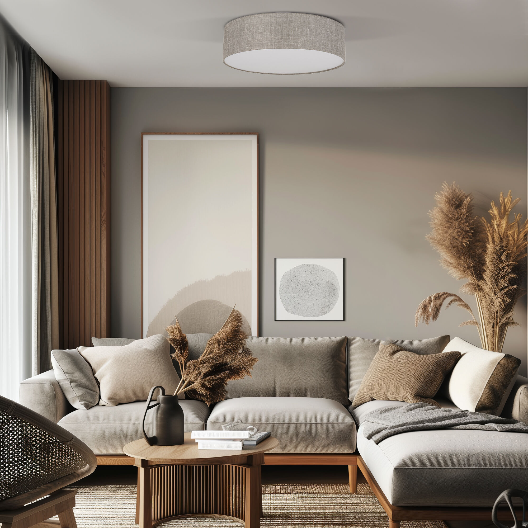 Потолочный светильник из коллекции Rondo от европейского производителя TK Lighting воплощает в себе природную элегантность в современном интерьере. Особый шарм ему придаёт плафон из натурального льна, который крепится на магните. Такое решение позволяет легко снимать плафон, что делает уход за светильником максимально простым.