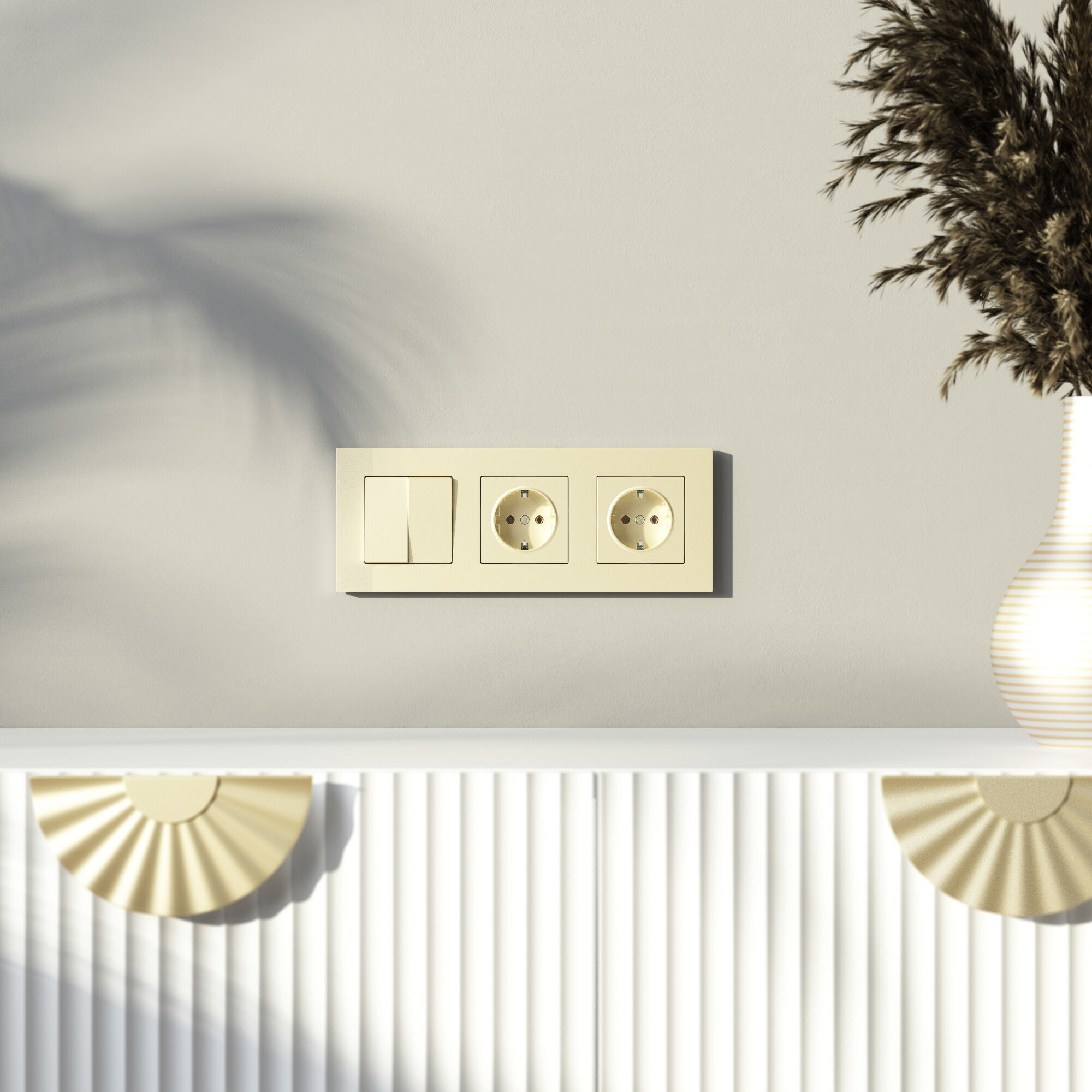 Slab— рамки из поликарбоната в оттенке шампань с металлическим блеском, современное и элегантное решение для вашего интерьера. Благородная фактура с металлическим сиянием приятно считывается и обладает тактильной мягкостью. В любом современном дизайне рамки обозначат себя как важный составной элемент, дополняющий предметы мебели и стилистику помещения. Серия Slab представлена моделями от одного до пяти постов. Рамки предназначены как для горизонтального, так и для вертикального монтажа. Коллекция совместима с любыми встраиваемыми механизмами Werkel. Быстрый и удобный монтаж — еще одно преимущество рамок. С установкой справится даже начинающий электрик, а при желании монтаж можно произвести и самостоятельно: достаточно следовать приложенной инструкции. Рамки изготовлены из негорючего ударопрочного поликарбоната.
