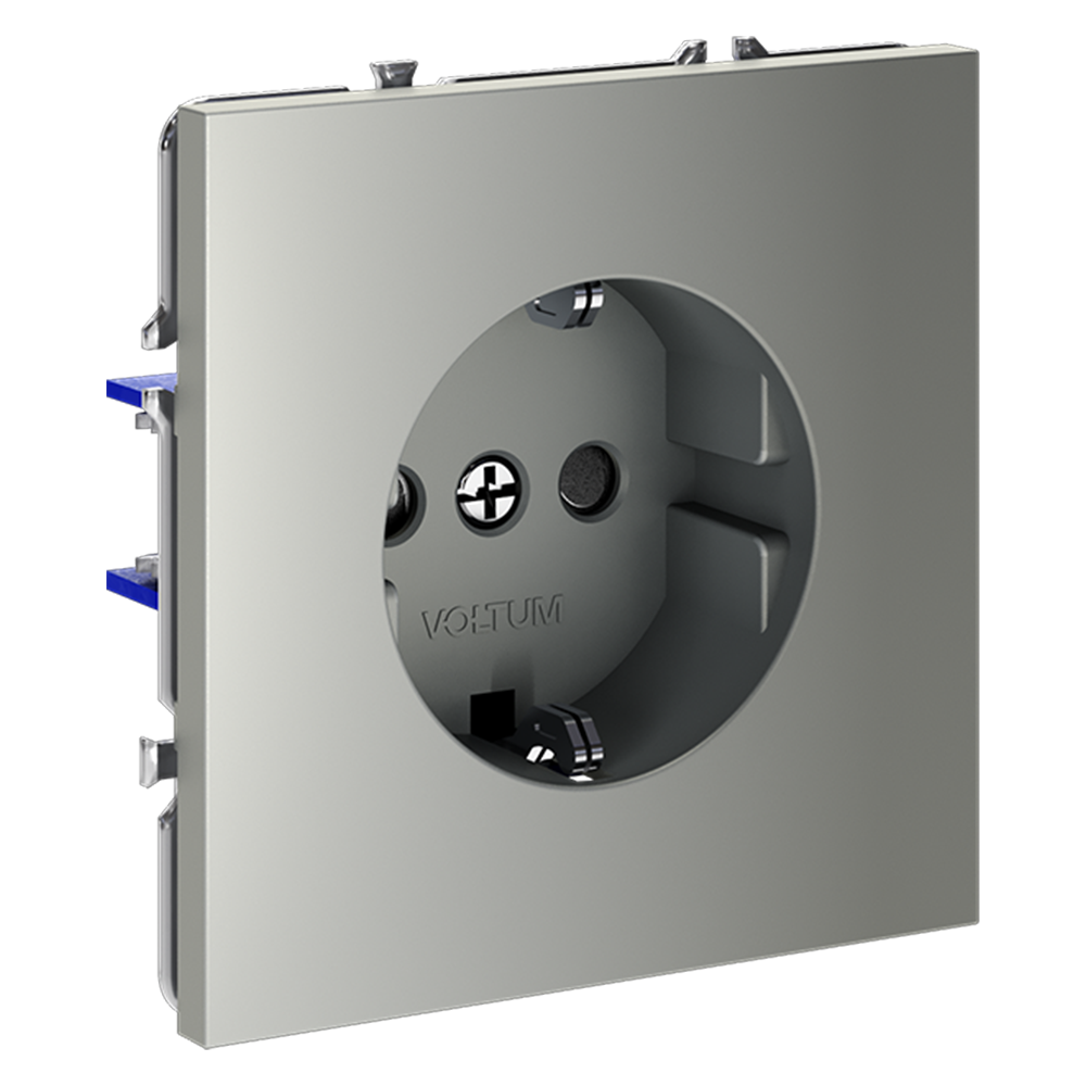 Купить "Розетка встраиваемая с заземлением и защитными шторками, 16А Voltum S70 VLS040205 (сталь)"