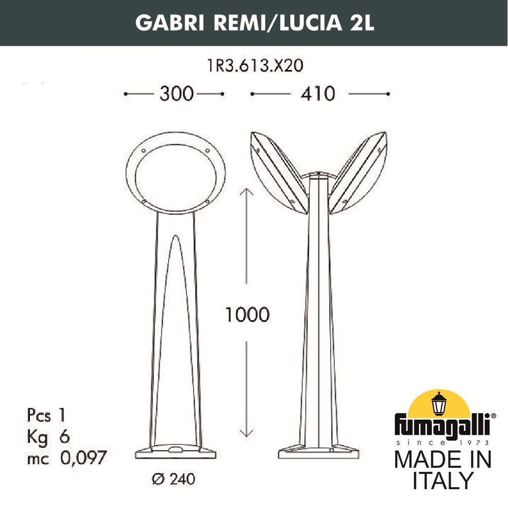 Купить "Садовый светильник-столбик наклонный Fumagalli Gabri remi/Lucia 2l 1R3.613.X20.WYE27"