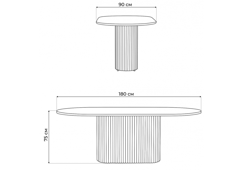 Материал каркаса - металл; Материал столешницы - МДФ; Цвет столешницы - белый; Ширина - 90; Высота - 75; Длина - 180;