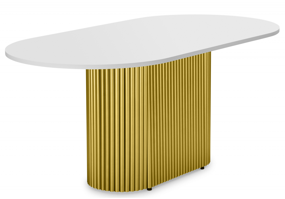 Купить "Стол деревянный Woodville Барон О 180 х 90 белая пленка шагрень / золотые ноги 620283"
