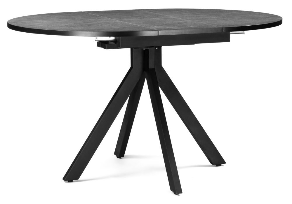 Толщина столешницы: 2,5 см. Материал каркаса - Металл; Материал ножек - Металл; Материал столешницы - ЛДСП; Цвет каркаса - Черный; Цвет ножек - Черный; Цвет столешницы - Черный; Цвет подстолья - Черный; Ширина - 100; Высота - 75; Длина стола в разложенном виде - 130; Длина - 100;