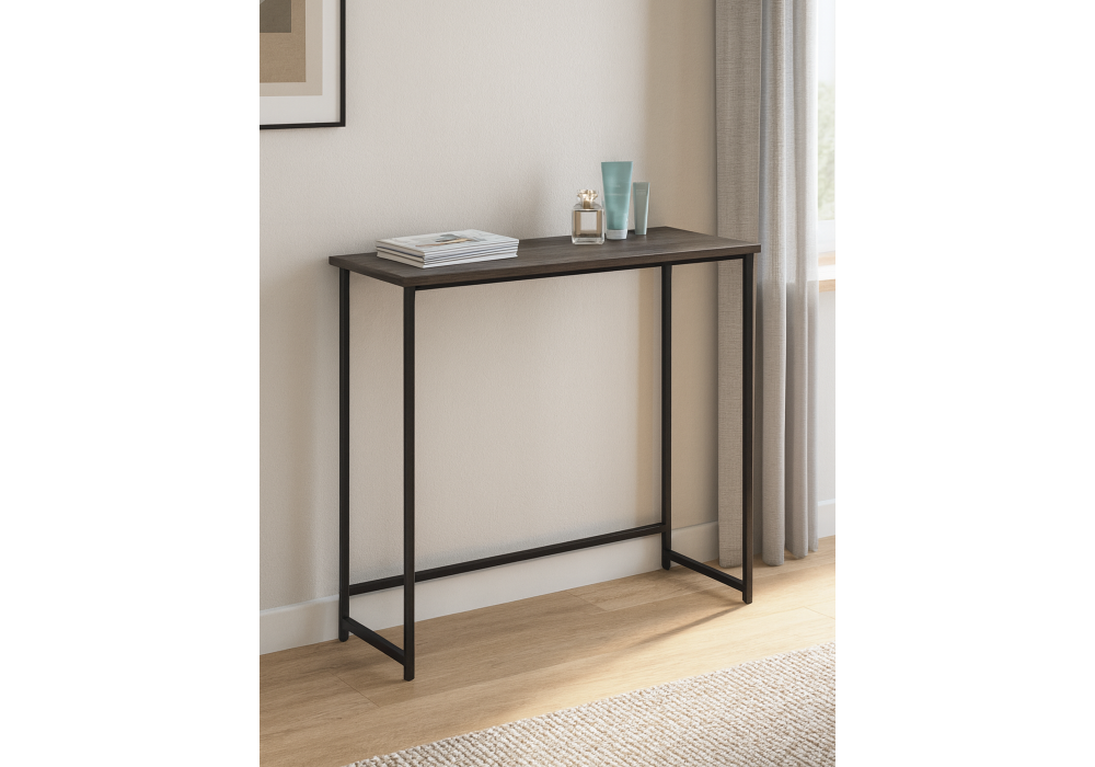 Консольный столик Феот сочетает в себе практичность и современный дизайн. Идеально подходит для прихожей, гостиной или коридора. Материал каркаса - металл; Цвет ножек - черный; Ширина - 80; Глубина - 30; Высота - 77; Длина - 80;