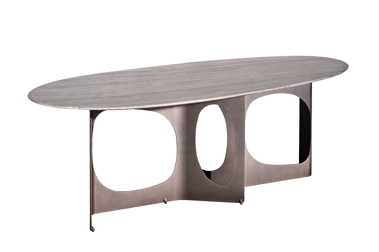 Обеденный стол Travertine становится композиционным центром интерьера, объединяя эстетику натурального камня и современную архитектурную форму. Столешница из травертина с живой природной текстурой подчёркивает премиальный характер модели и делает каждый экземпляр уникальным. Металлическое основание создает эффект скульптурного объекта в пространстве. Такой стол идеально подходит для стильных столовых и гостиных, где важны статус, комфорт и актуальный дизайн. Просьба обратить внимание, что при перемещении стол следует держать только за основание, а не столешницу! Иначе столешница может потрескаться.