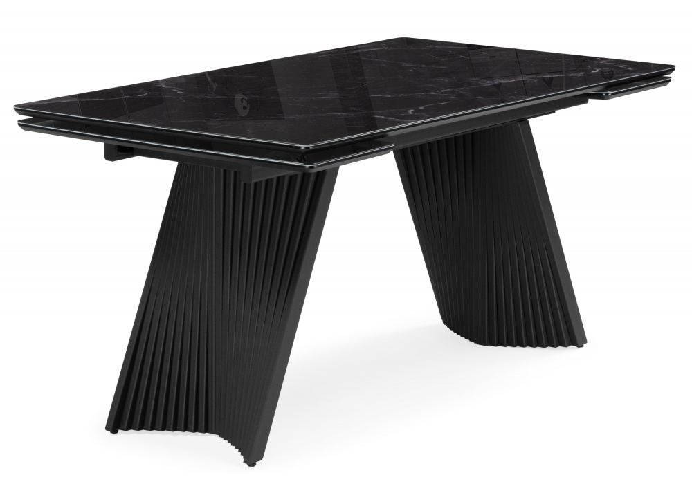 Стол стеклянный раскладной 140(200)х80 Woodville Вейв черный мрамор / черный 625995 Чебоксарам