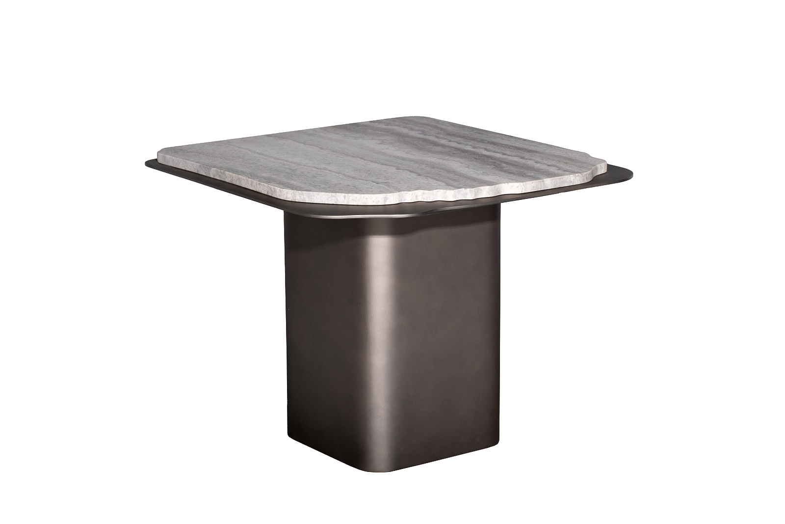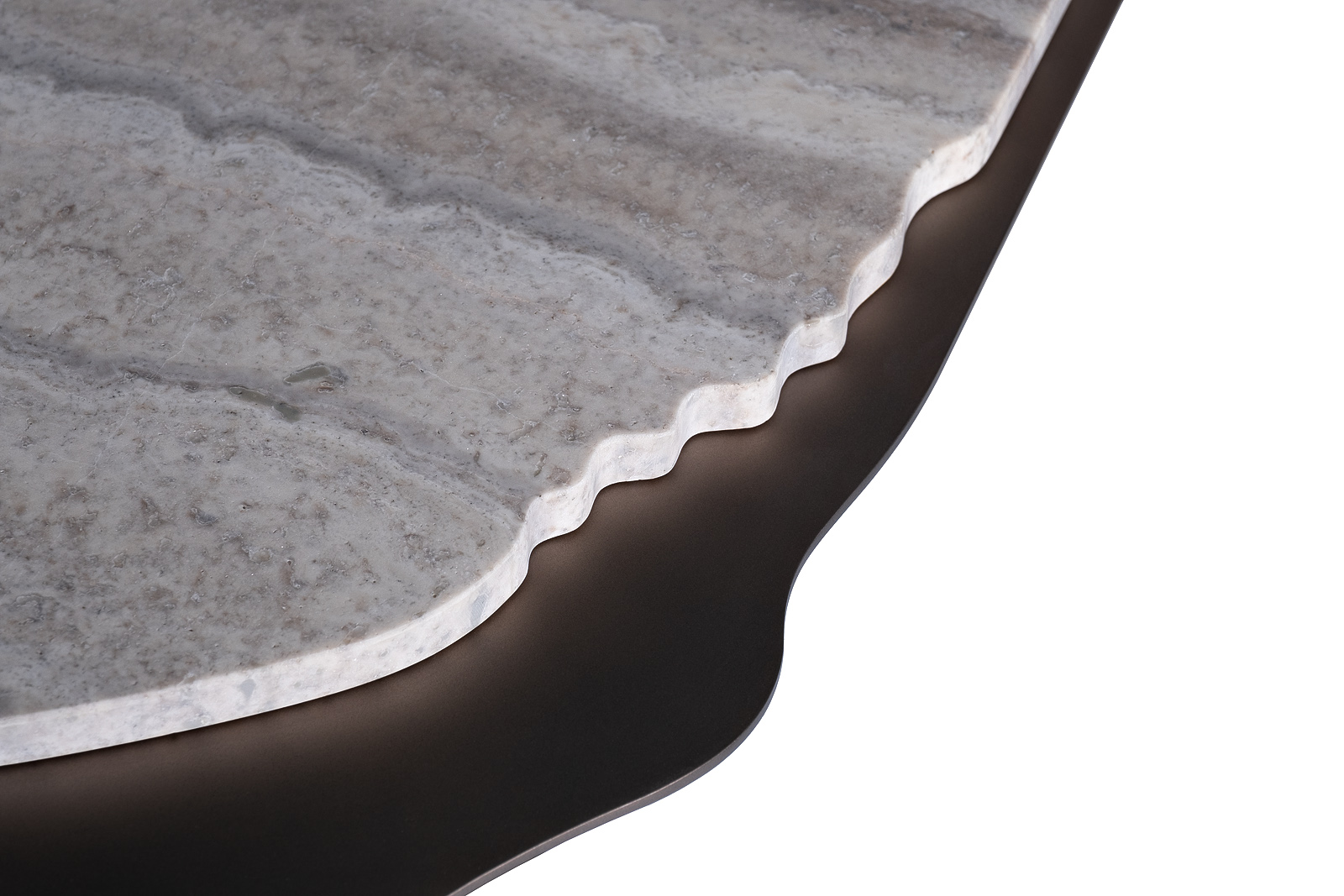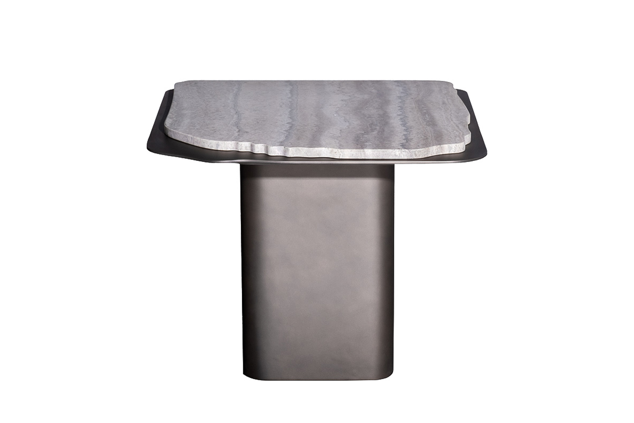 Столик журнальный Travertine — выразительный акцент современной гостиной, в котором природная эстетика сочетается с архитектурной формой. Этот журнальный столик из травертина привлекает внимание столешницей из натурального камня с естественным рисунком и мягко обработанным краем. Металлическое основание придаёт конструкции устойчивость и подчёркивает современный характер дизайна. Дизайнерский журнальный стол Travertine органично вписывается в интерьеры в стиле modern luxury, минимализм и современная классика, добавляя пространству глубину, статус и визуальное равновесие.
