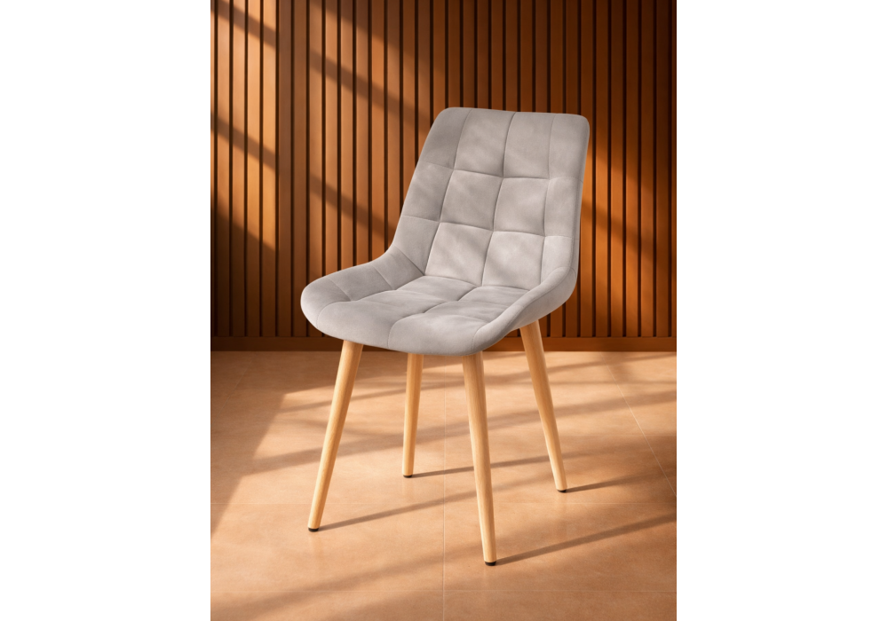 Материал каркаса - дерево; Материал сиденья - велюр; Материал обивки - велюр; Цвет ножек - натуральный; Ширина - 50; Глубина - 60; Высота - 80; Ширина сиденья - 44; Глубина сиденья - 41; Высота сиденья - 48;
