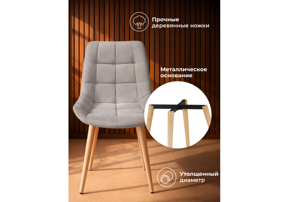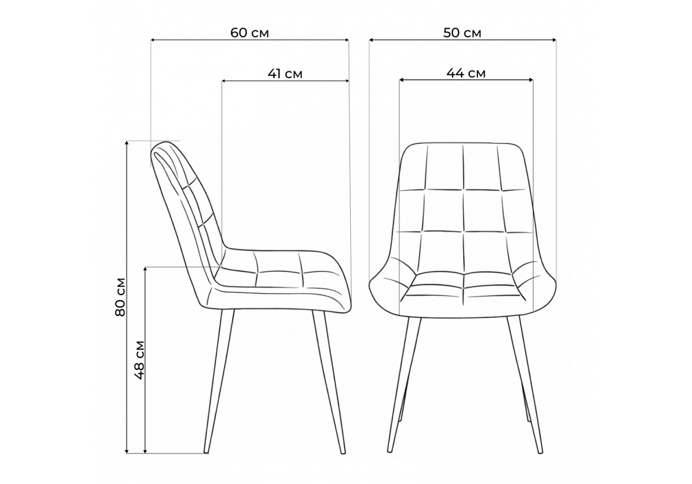 Материал каркаса - дерево; Материал сиденья - велюр; Материал обивки - велюр; Цвет ножек - натуральный; Ширина - 50; Глубина - 60; Высота - 80; Ширина сиденья - 44; Глубина сиденья - 41; Высота сиденья - 48;