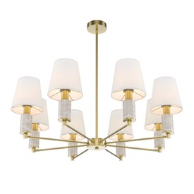 Серия включает подвесные (6 и 8 рожков), настенные, настольные и напольные светильники. Арматура: металл цвета сатинированной латуни с декоративными элементами из серого мрамора. Абажуры: текстиль. Сменный источник света с цоколем E14. Высота подвесных светильников регулируются сегментами штанги. Классический дизайн в современном исполнении. Предназначены для основного и акцентного освещения жилых помещений. Универсальное применение: гостиные, столовые, спальни, кабинеты, прихожие.
