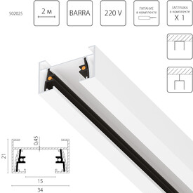 Трек 2-контактный однофазный 2м Lightstar Barra 502025-P