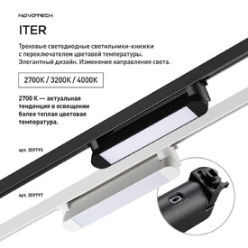 Трековый светильник однофазный двухжильный с переключателем температуры Novotech ITER 359793 белый