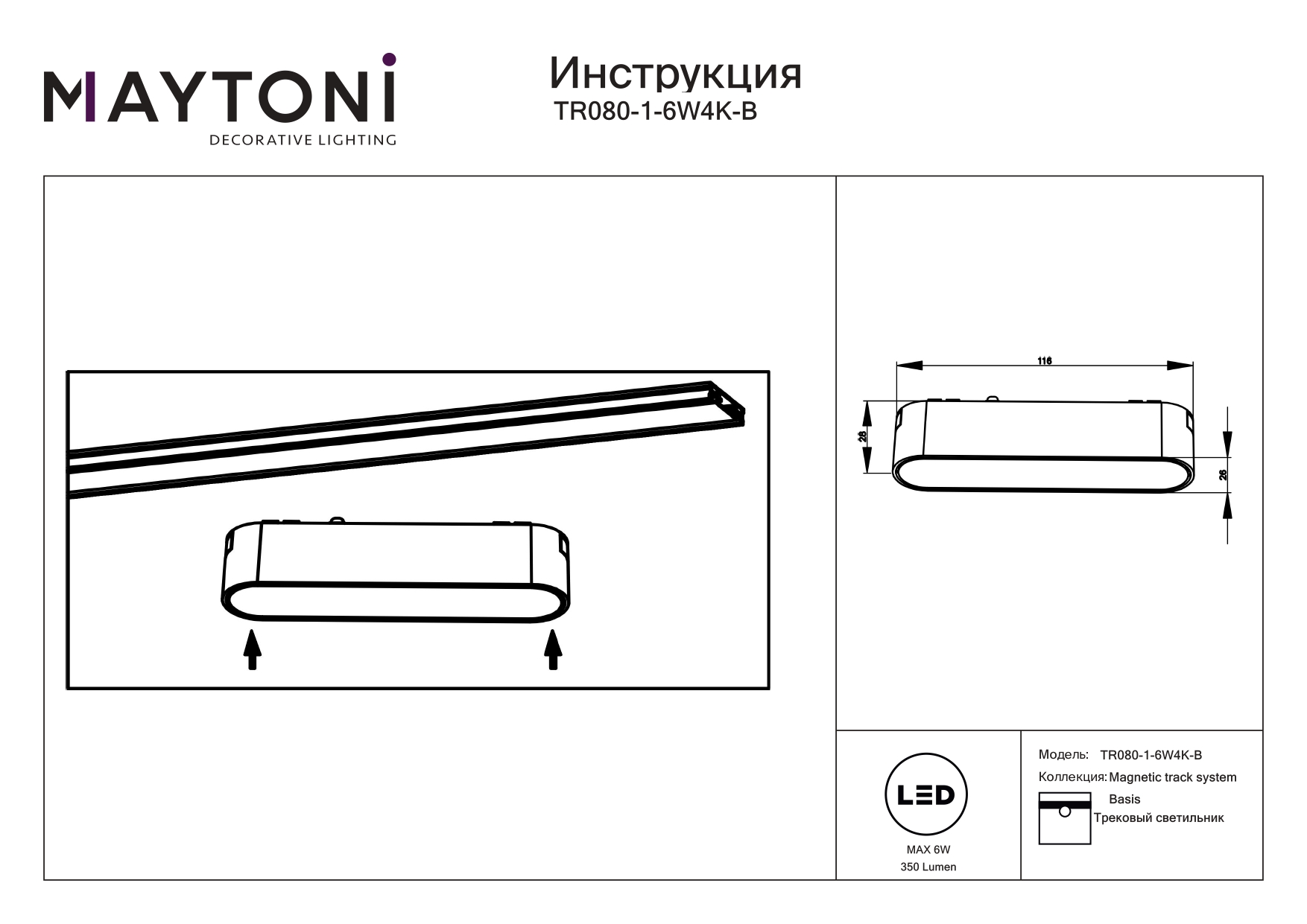 Трековый магнитный светодиодный светильник Maytoni Basis TR080-1-6W4K-B Чебоксарам