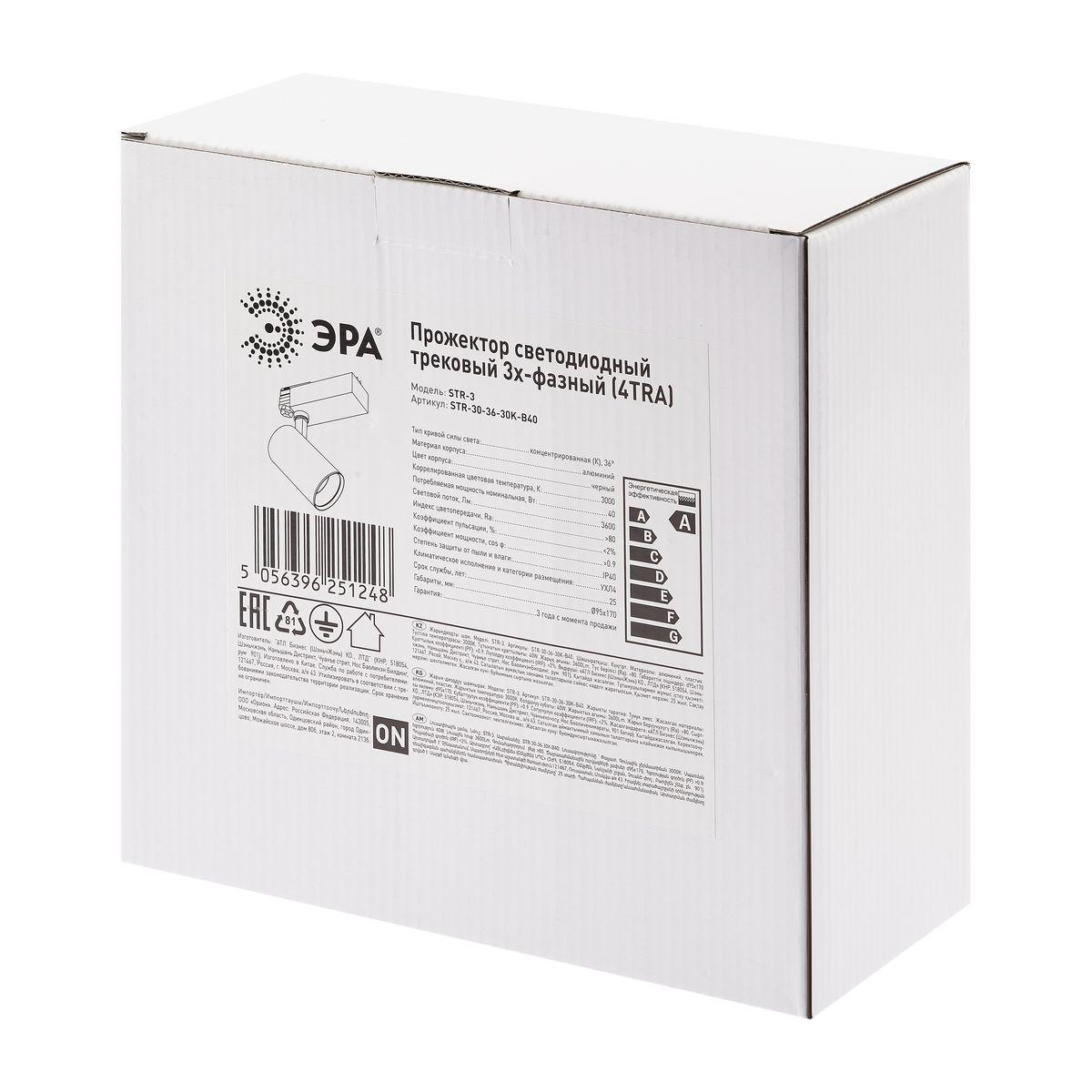 Купить "Трековый светодиодный светильник ЭРА SТR-30-36-30K-B40 Б0049780"