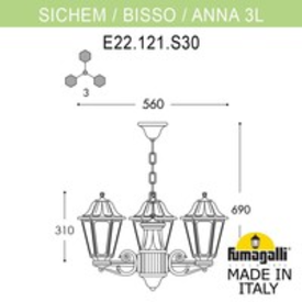 Подвесной уличный светильник Fumagalli Sichem/Anna 3l E22.120.S30.BXF1R